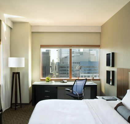 Хотел Westin на таймс Скуеър в Ню Йорк се гордее с това, че осигурява отдих на уморените си, пътуващи по бизнес задачи клиенти, нощуващи в епицентъра на искрящите светлини на Манхатън. Луксозният 5-звезден хотел гарантира на гостите си, че дори в най-натоварената част на града “спокойствието е приоритет … а възстановяването от умората е неизбежно.”
